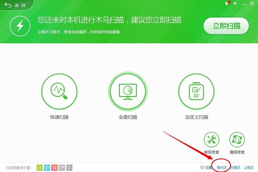 下面以360安全衛士為例說明在殺毒軟件中添加信任: