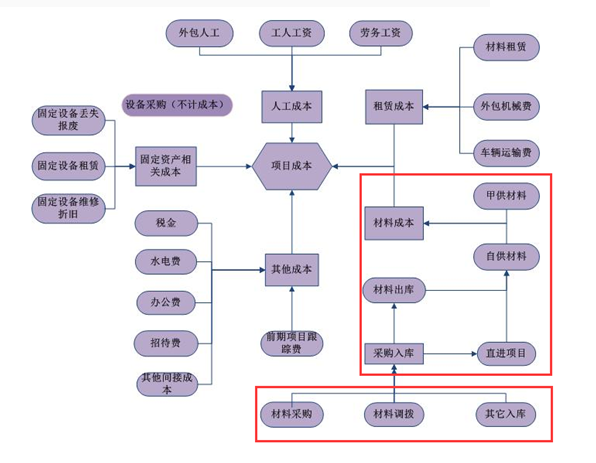 材料成本,可分為自購材料、甲供材料兩大類(其中甲供材料根據(jù)項目實際情況可選擇是否要納入統(tǒng)計)。