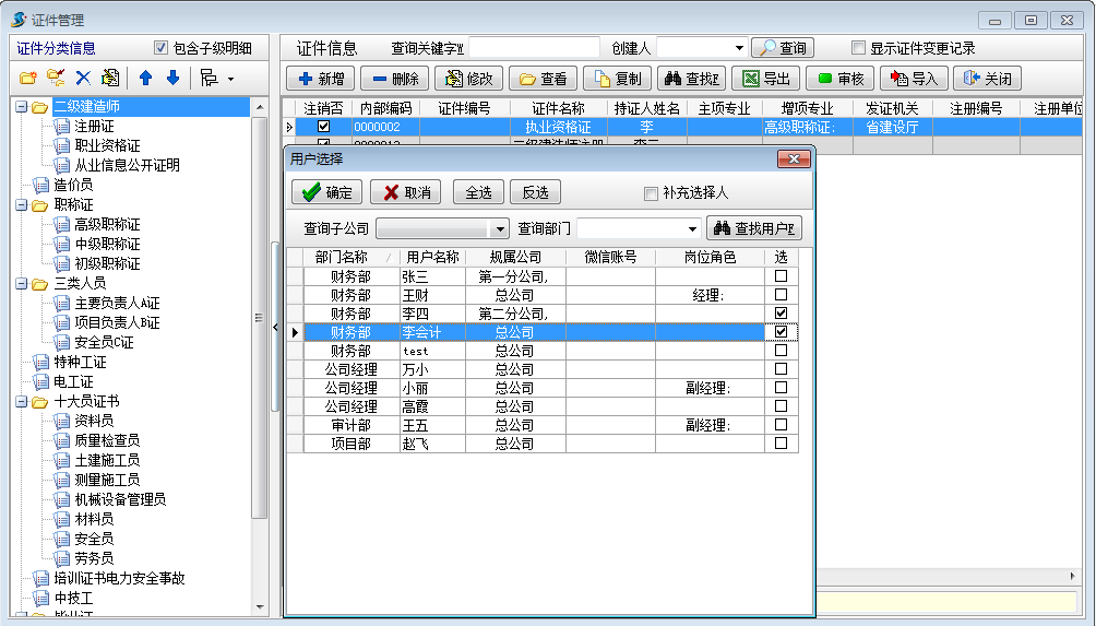 工程項目管理軟件證件管理