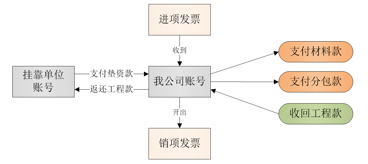 1、由于“營改增”后,為實(shí)現(xiàn)進(jìn)項(xiàng)發(fā)票的沖抵、我們會(huì)要求掛靠單位給我們提供進(jìn)項(xiàng)發(fā)票,他所購買的材料款、收到的工程款必須走我方的公司賬戶。材料供應(yīng)商開具的發(fā)票抬頭也必須是我方的單位名稱,這樣就使得“發(fā)票”、“付款”兩者一致。