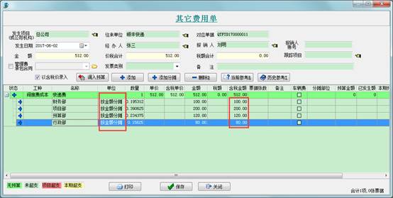 發生的項目我們選擇總公司,費用名稱為快遞費(可以事先在費用科目維護里設置好)。