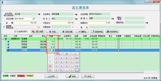 在使用工程項目管理軟件中,如果有的費用需要分攤到項目或部門中去,需要在做其他費用單時做如下操作,這里做簡單的演示;
