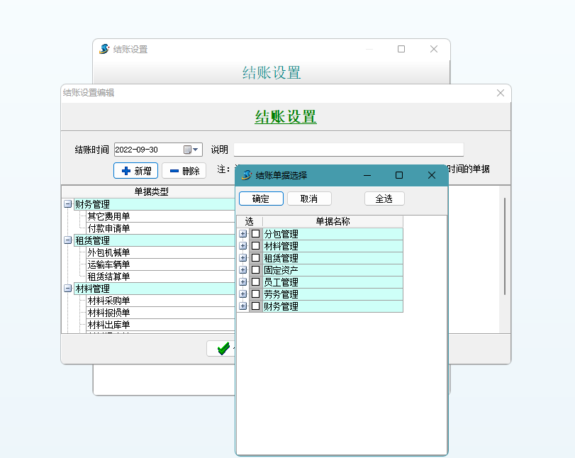 金石工程管理軟件新增結賬設置功能