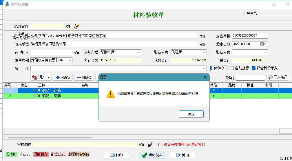 【系統維護】中增加了【結賬設置】功能,設置結賬時間點八大業務單據,將不能再補錄發生日期早于結賬日期的單據。