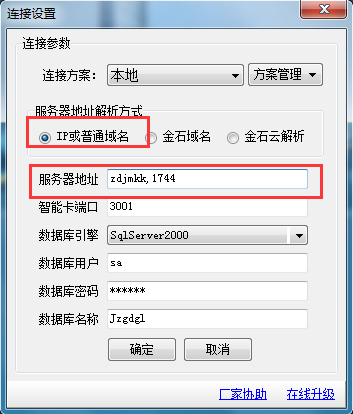 在做連接設置時直接選擇使用IP或計算機名稱,不要選擇金石云解析。如下圖是金萬維解析: