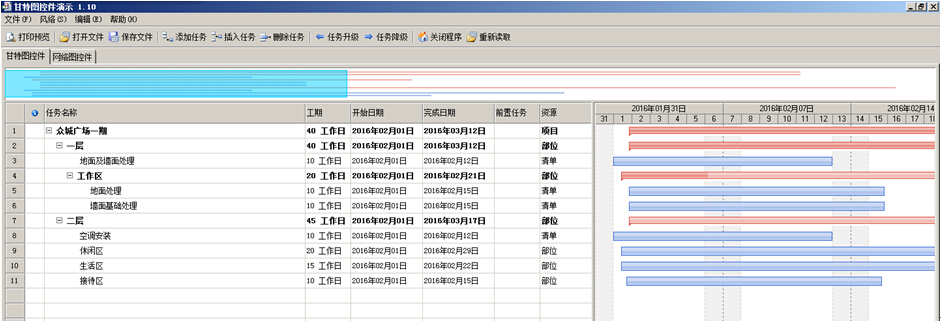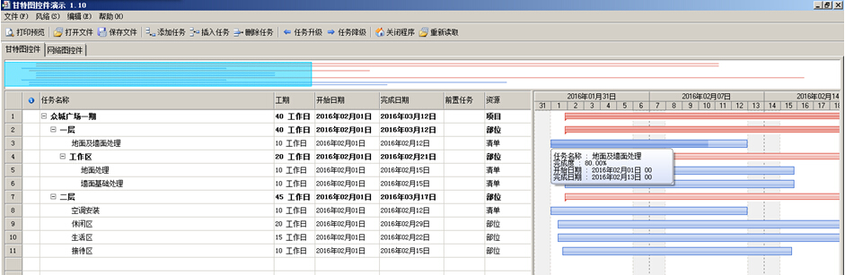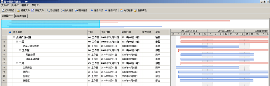 1、 工程量進度清單可生成甘特圖,包括“形象比預算”、“實際比合同”以及“實際比預算”的甘特圖,如圖:
