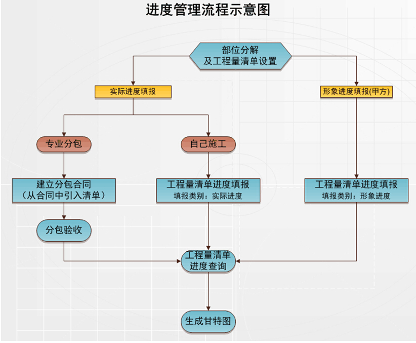 項目進度填報方式分為:形象進度填報(上報給甲方的進度)和實際進度填報,兩者的上報量可以不一樣,形象進度填報主要是和甲方結算使用,該填報會體現的【承包合同】應收款中。實際進度填報主要是體現實際完成量,該填報得出的實際產值會體現到【項目成本利潤表】、【工程經營狀況表】和成本發生成本進行比較。注:在當今社會為提高企業收益,工程實際施工量(即分包合同簽訂量)會小于向甲方上報的形象進度量,該情況主要與現場項目經理水平有很大關系!