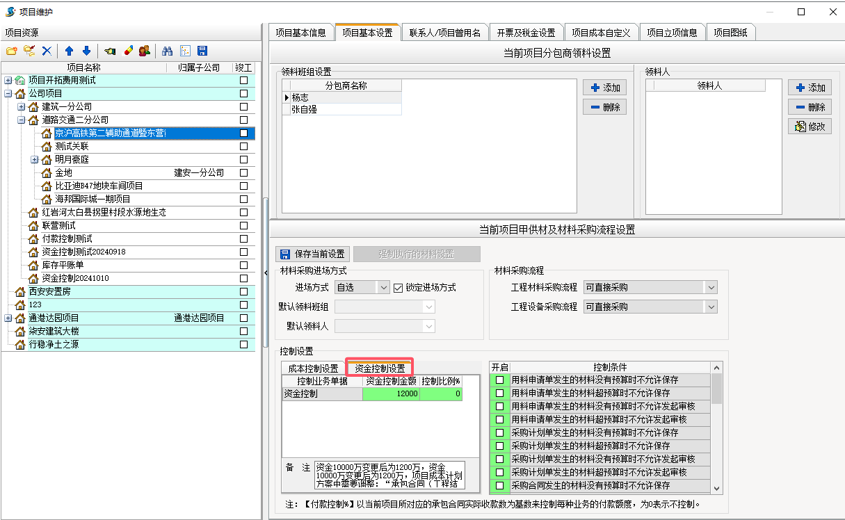 資金控制 :主要應用于項目成本相對滯后,項目預付款多,通過設置 資金控制 控制付款金額和付款比例