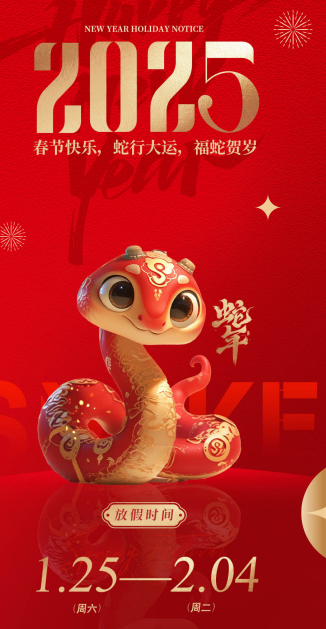 冬去春來,新年將至,金石軟件定于2025年1月25日放假至2月4日,2月5日(農歷正月初八)開工,謹在此祝廣大客戶朋友年年如意,事事順心。
