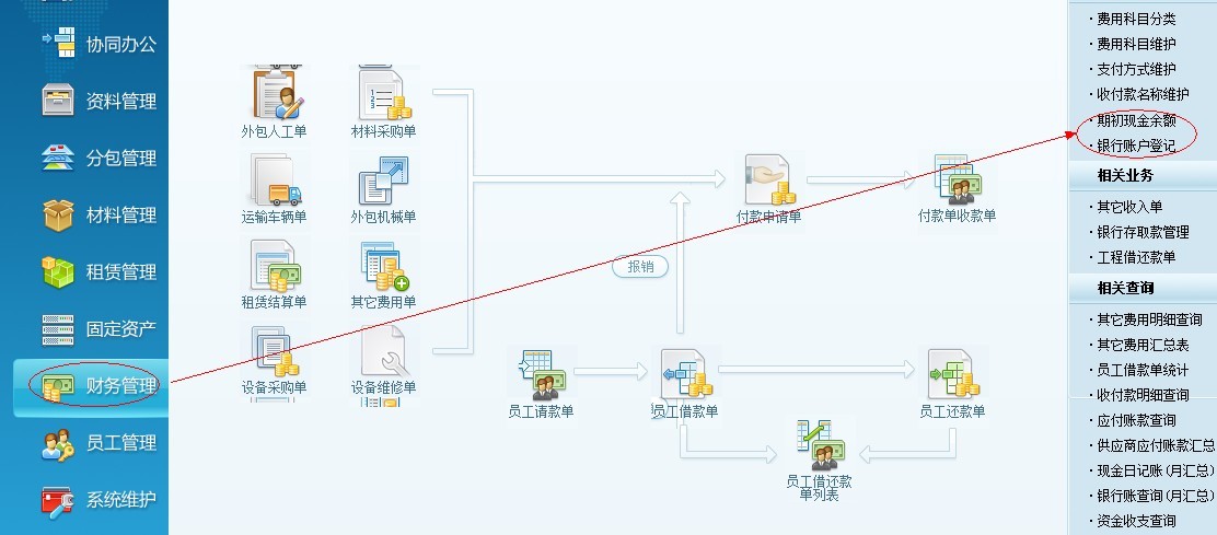 財務現金賬和銀行賬的的期初錄入,是在財務模塊中的期初現金余額、銀行賬戶登記來錄入。如下圖: