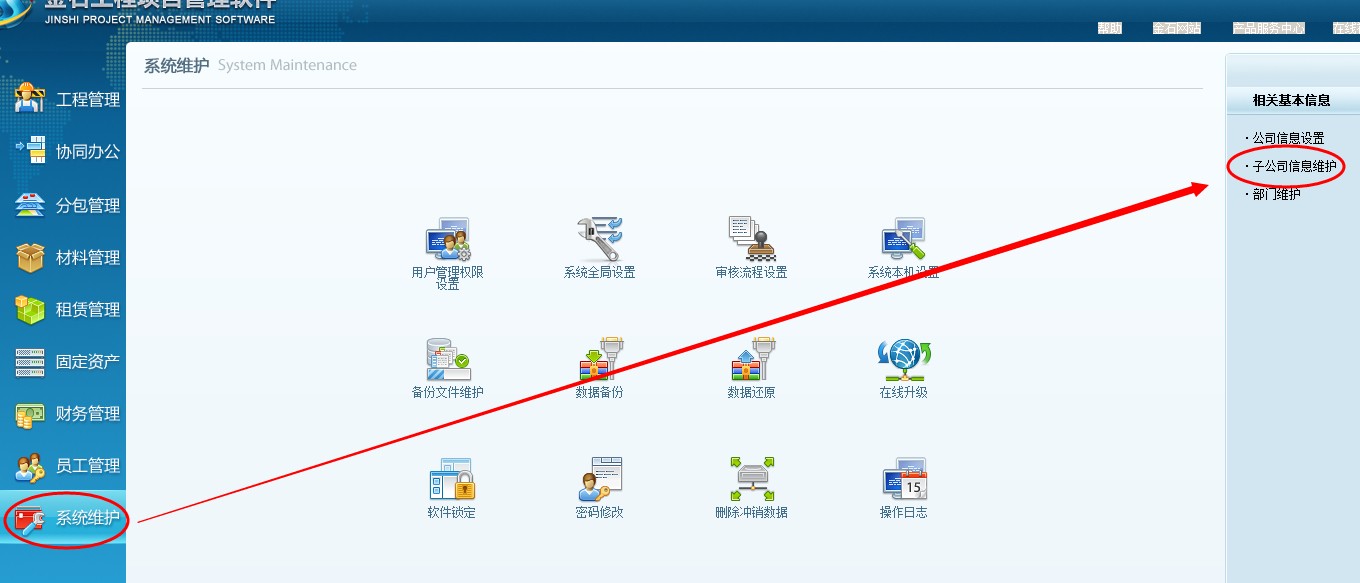 一、 項目按分公司授權 (注:適用于有分公司的的企業(yè)使用)1、首先登錄超級用戶,導航欄---系統(tǒng)維護---子公司信息維護中設置幾個子公司名稱。