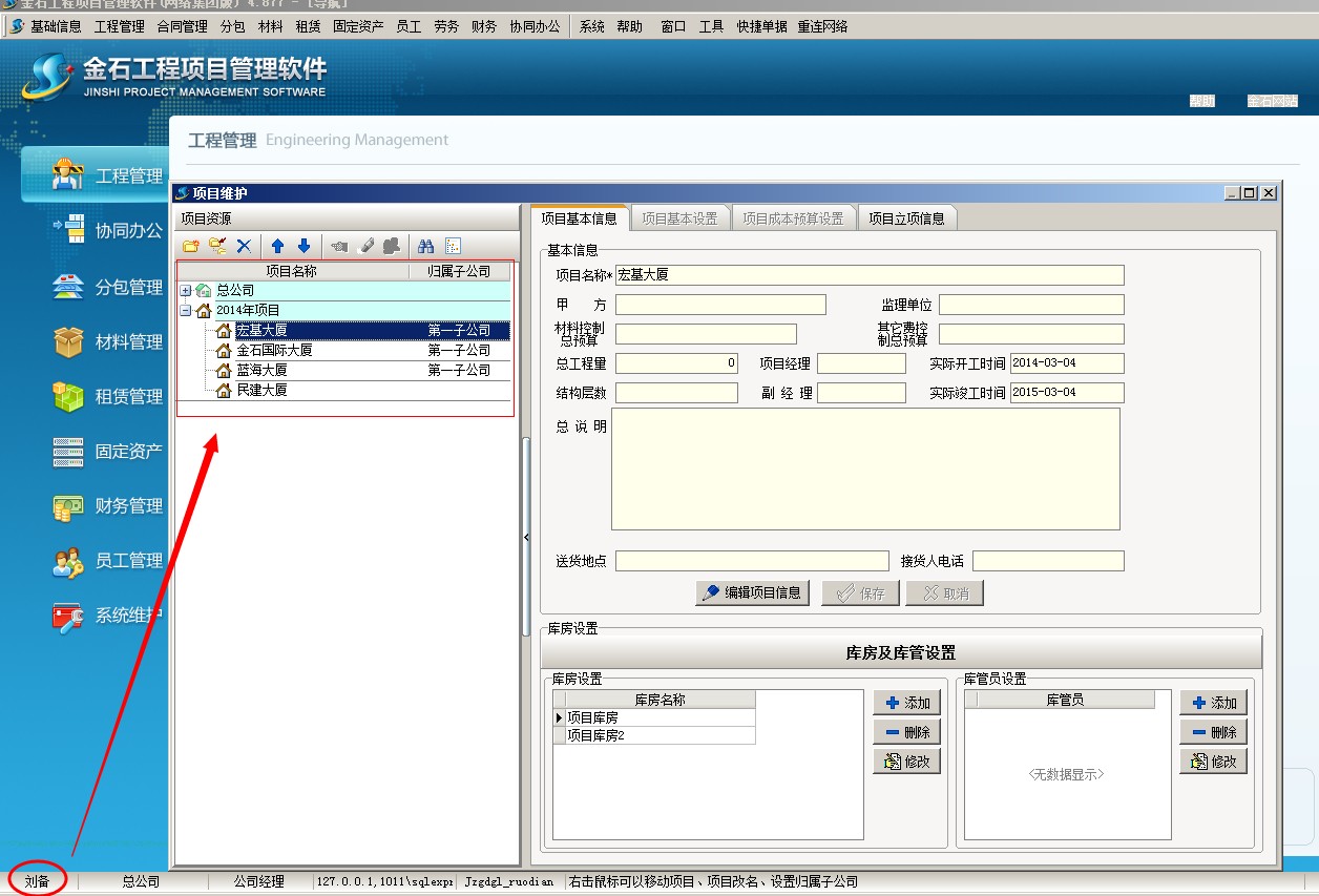 公司選擇窗口中選擇項目所屬的子公司,點確定